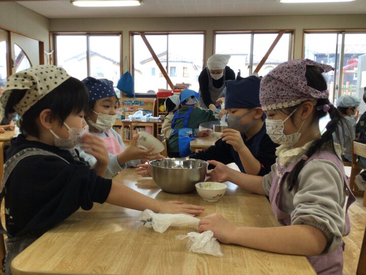 今日は、朝から雪が降っており一段と寒い一日でしたが、子どもたちはお部屋や遊戯室で