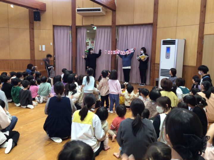 幼児クラスのお友だちは、遊戯室に集まってこどもの日の集いに参加しました。
