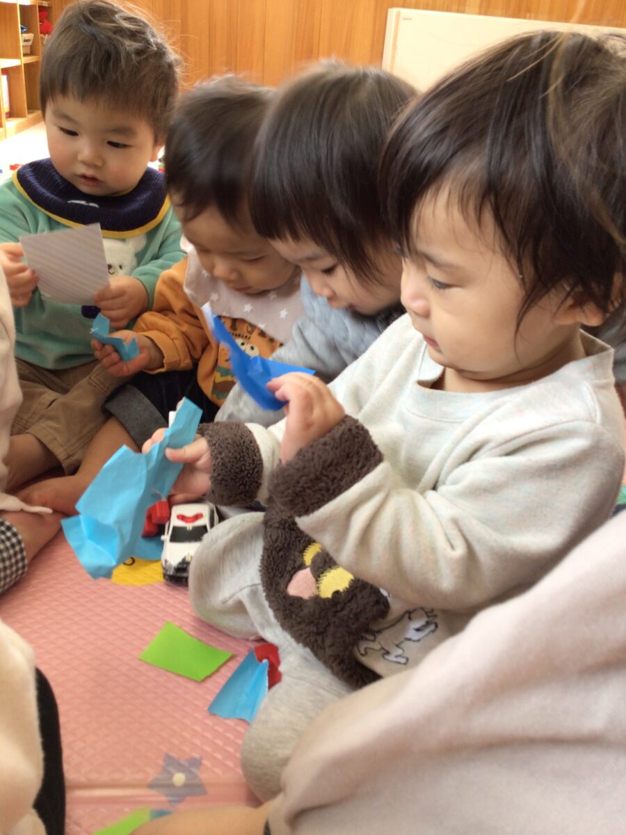 今日は、ちぎり絵をして楽しみました。切れ目を入れると「ビリビリだよ」と真似っこをしてビリビリと上手に紙をちぎっていた子どもたち💗感触やちぎる音が気に入ったのか夢中になって楽しんでいました😊
