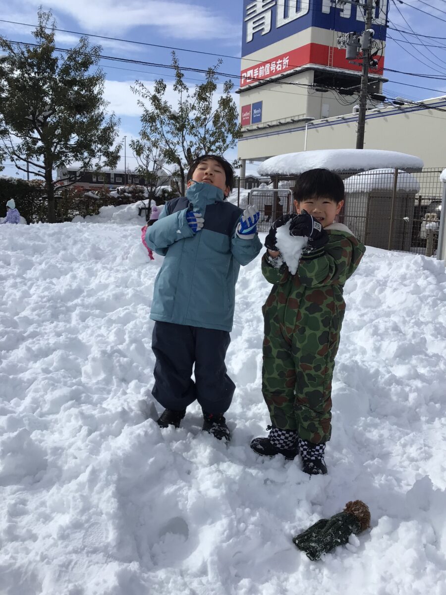 雪だるまを作って遊びました😊丁度お日さまも出てきて天気が良く✨✨