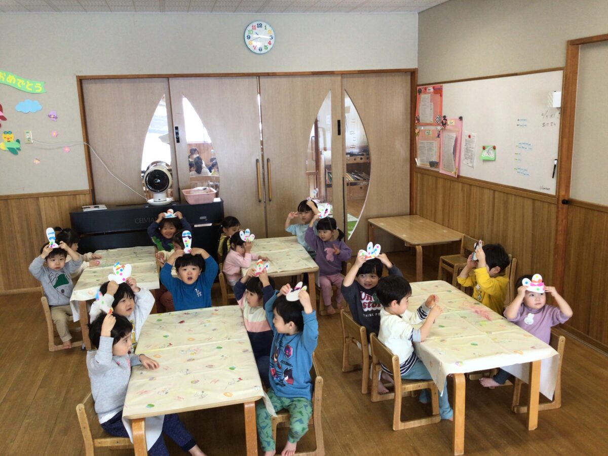 ベビン先生の英語の後に、新聞紙の豆をまきました。ことり組さんの元気の良さに悪い鬼は逃げて行ったと思います😊💗