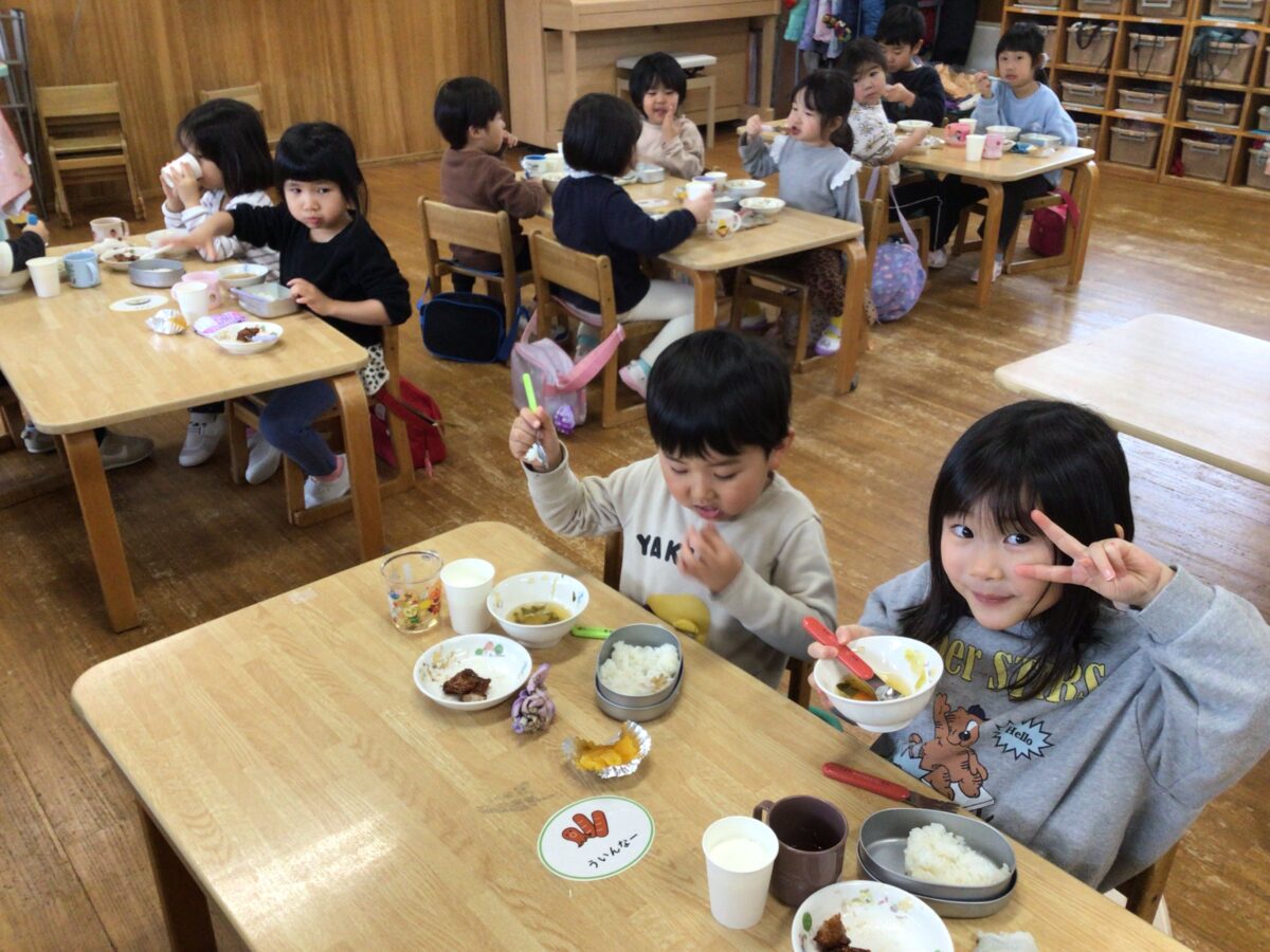 その後は美味しい給食をいただきました♡「チキンおいしいー」とニコニコなうさぎぐみさんでした♡