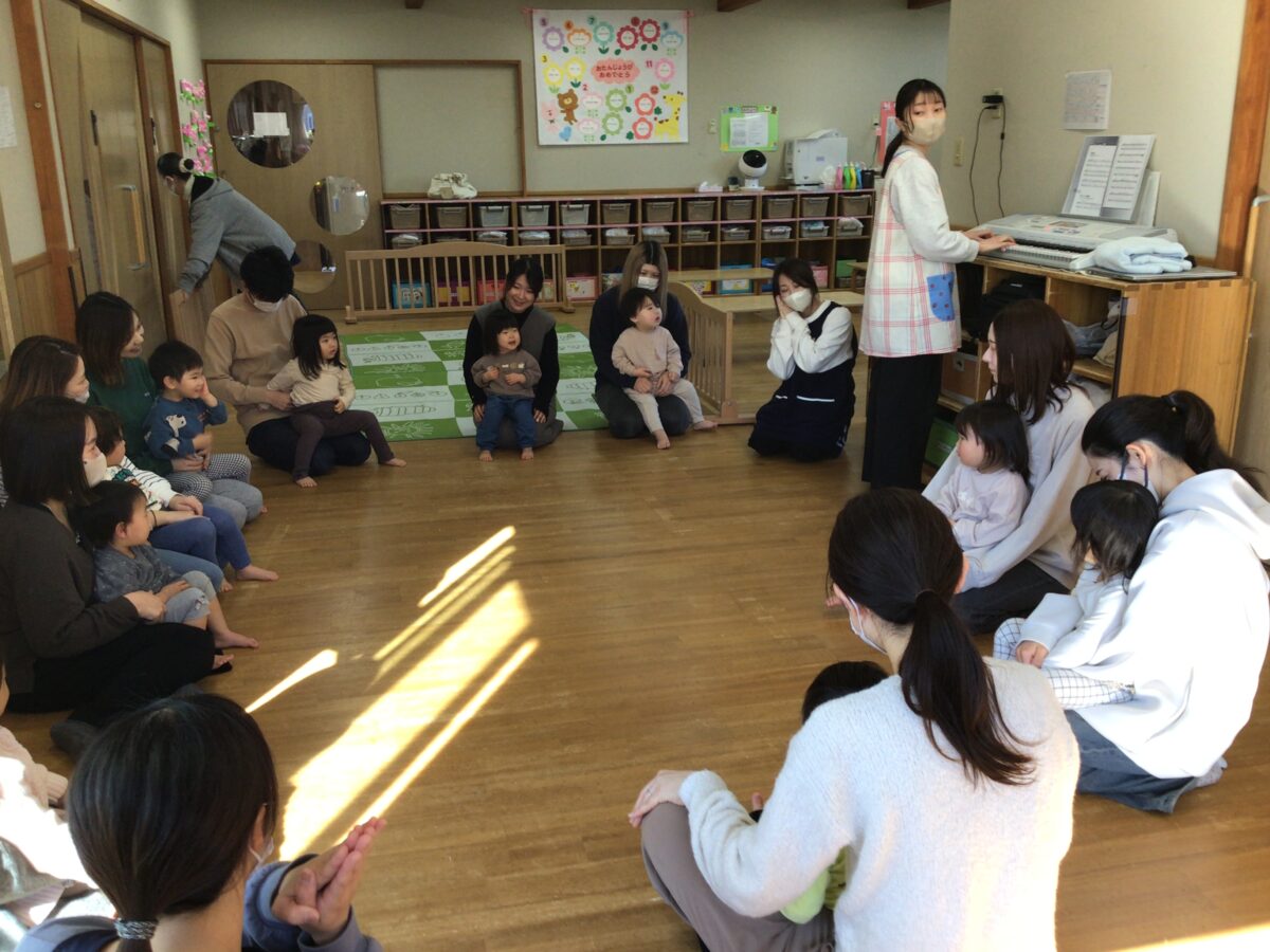 お母さんと一緒にリトミックに参加し、ことりぐみさんもにこにこ笑顔でしたね😊