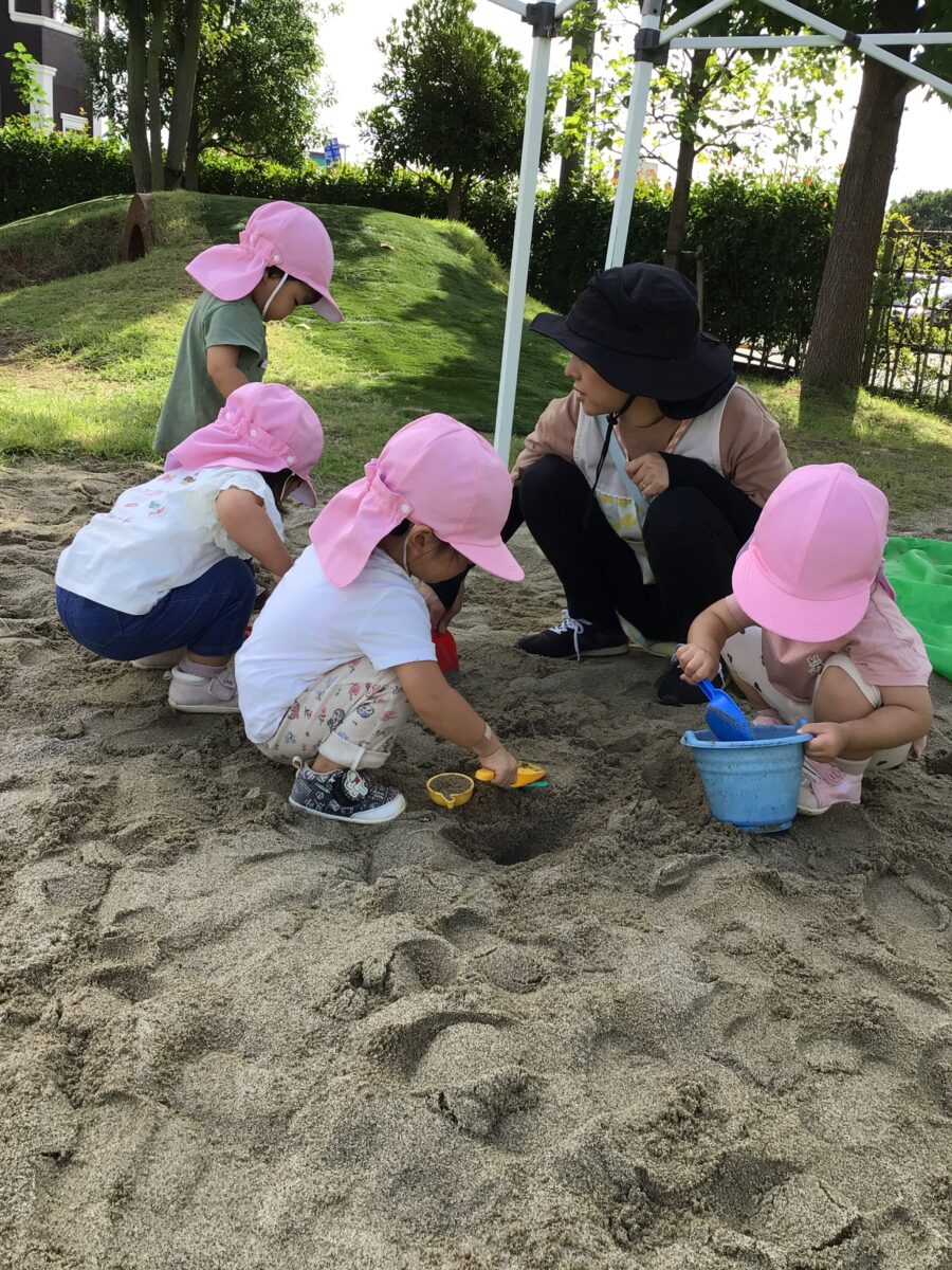 昨日の雨で少ししっとりとしたお砂場では、型抜きを楽しんでいるお友だちが沢山!!