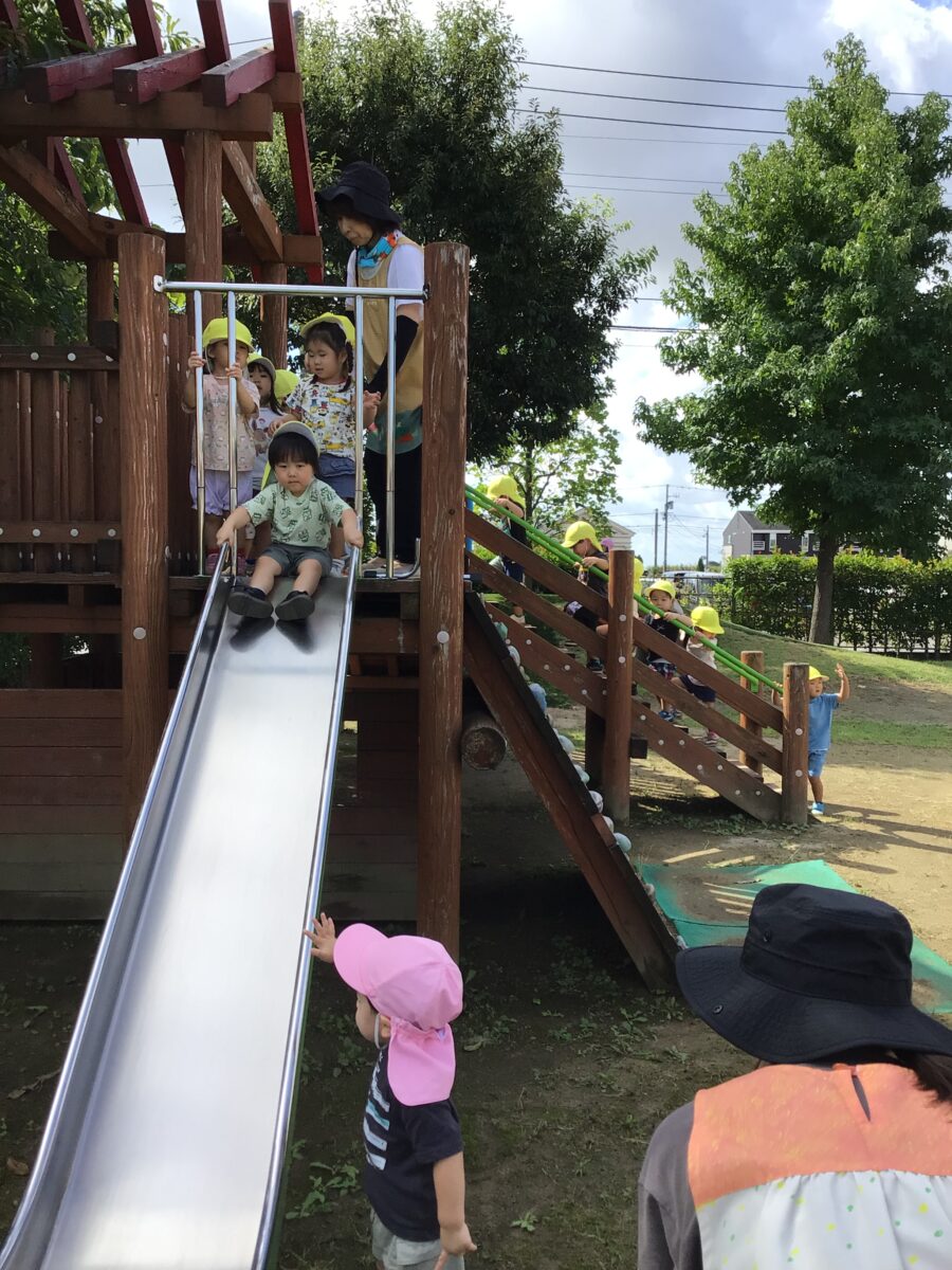 初めての滑り台、とっても楽しかったようで階段は行列です😊