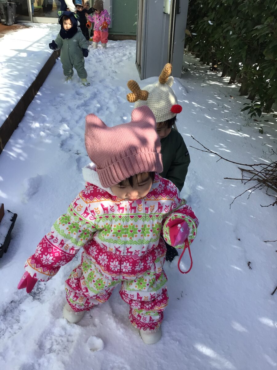 初めての雪遊びにちょっとドキドキぢているような様子のお友だち…いろんな様子が見られました。
