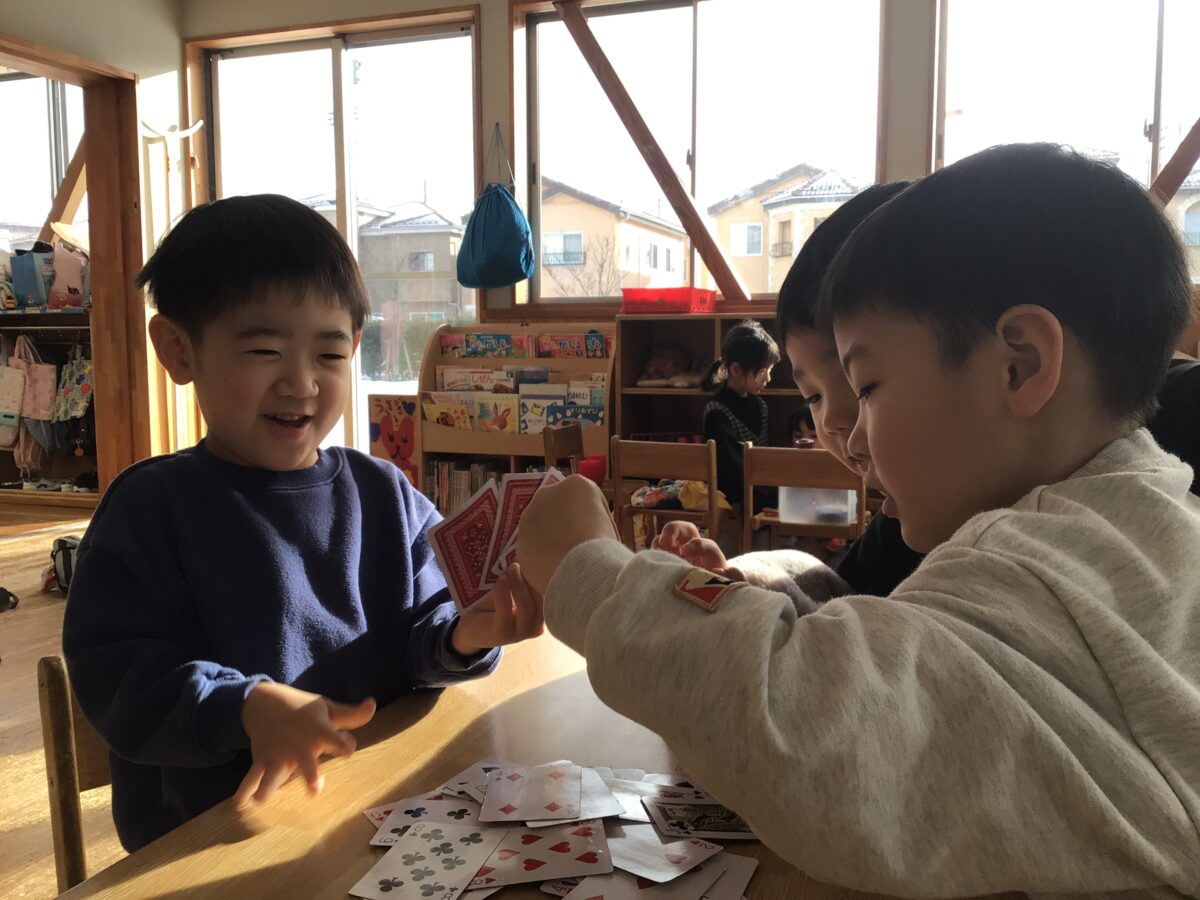 数字に興味を持ち、ドキドキわくわくしながらお友だちのカードを引いたりしています。