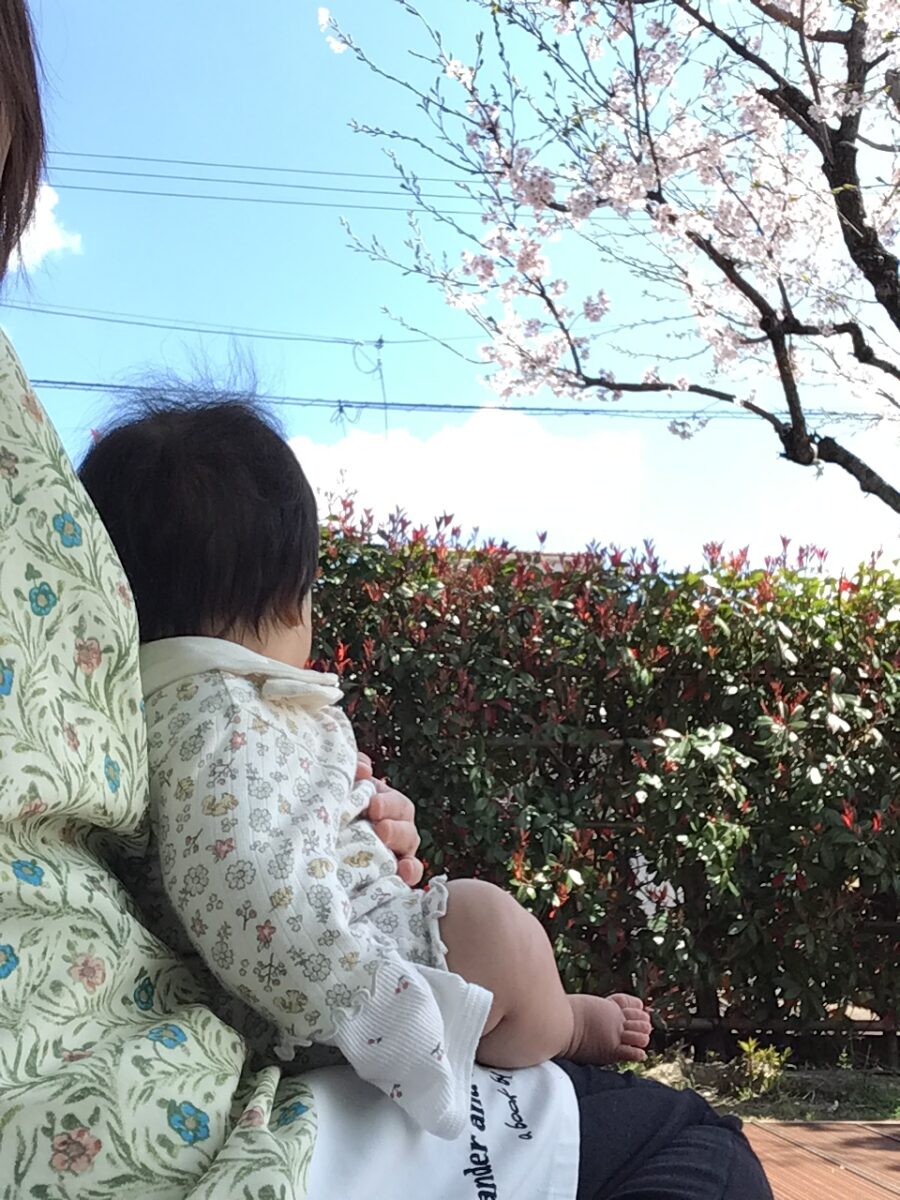 0歳児のお友だちも順番にテラスに出て桜の木の下でお花見をしました🌸