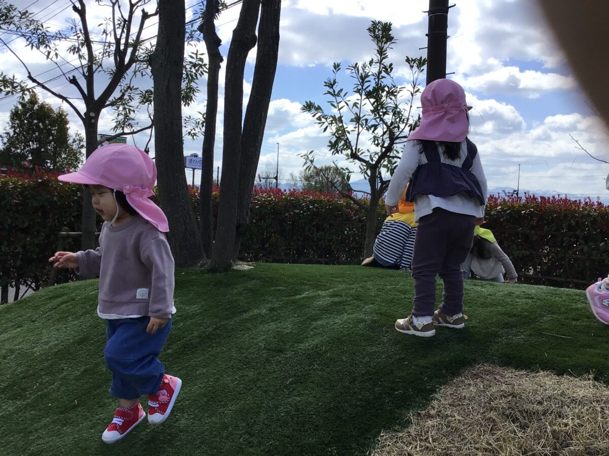 また、築山にのぼって芝生の上をしゅー!と滑ることを楽しんでいる子もいましたよ♪