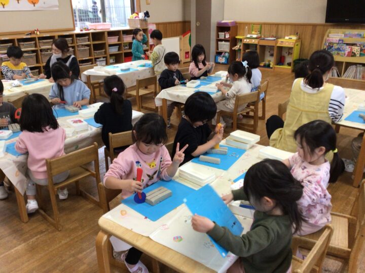 「桜の花びらは何枚かな?」「真ん中が濃い色だね」とじっくり観察もしました。