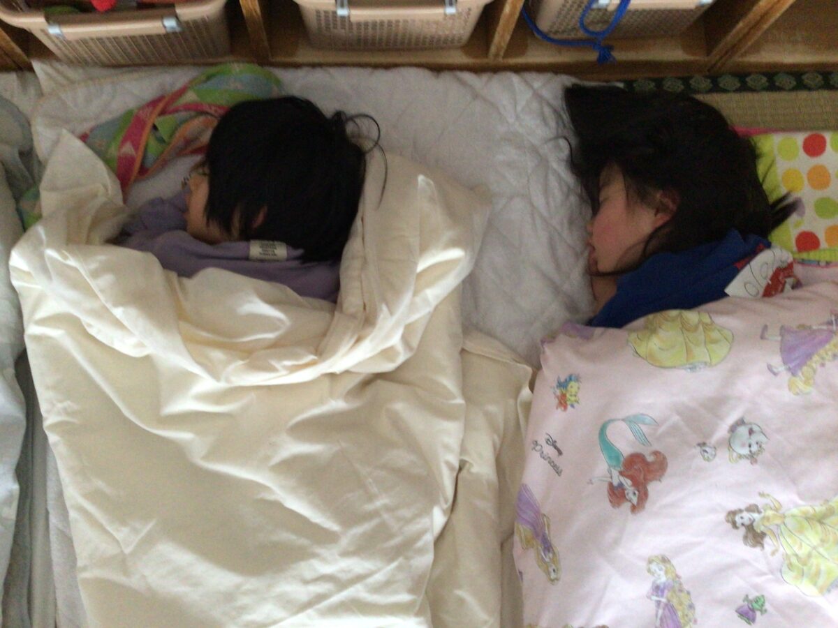 日中はリトミックで沢山身体を動かし、わかめごはんもモリモリ食べてグッスリな、