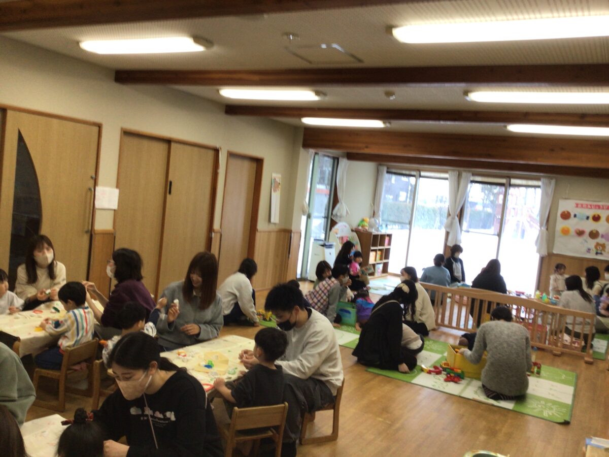 登園して、お家の方と好きな遊びを自由に楽しんでいます。