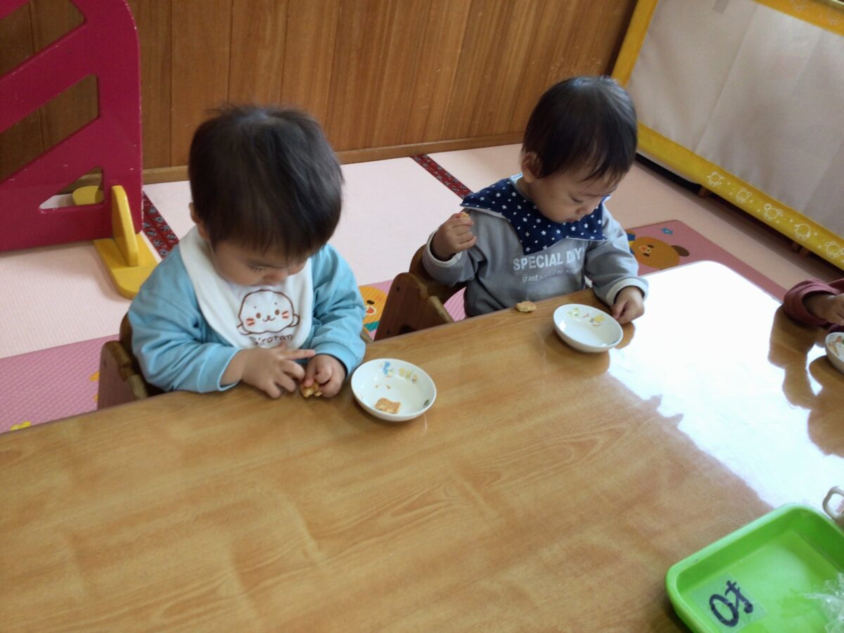 今日はおやつの時間😊上手につまんでモグモグ食べ進めています!
