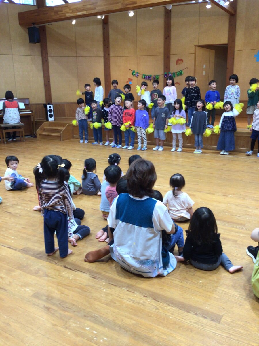 幼児組のお友だちがお客さんで見てくれていたこともあり、少し緊張気味の子どもたち。
