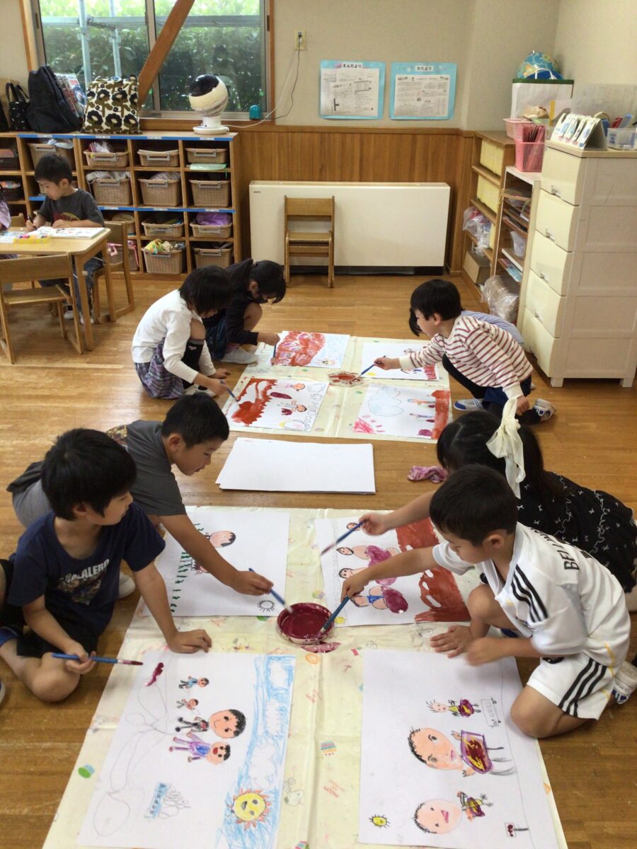 今日は、朝遊戯室でたくさん体を動かした後、お部屋で製作をしました。