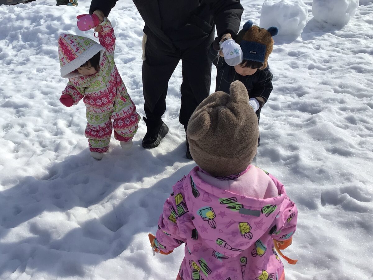 雪だるまを作ると、みんなで「ゆきだるまのチャチャチャ」を歌って楽しんでいました💕