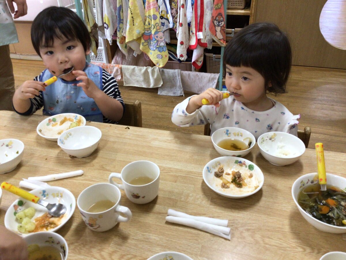 たくさん園庭で遊んでおなかペコペコのりす組さん。