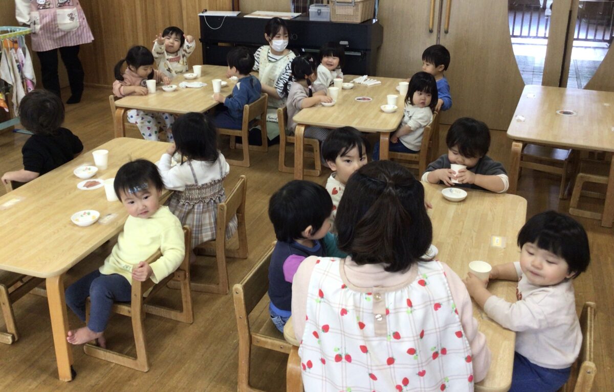 今日は、初めてりすぐみさんの部屋で朝の会をしたり、おやつを食べました!