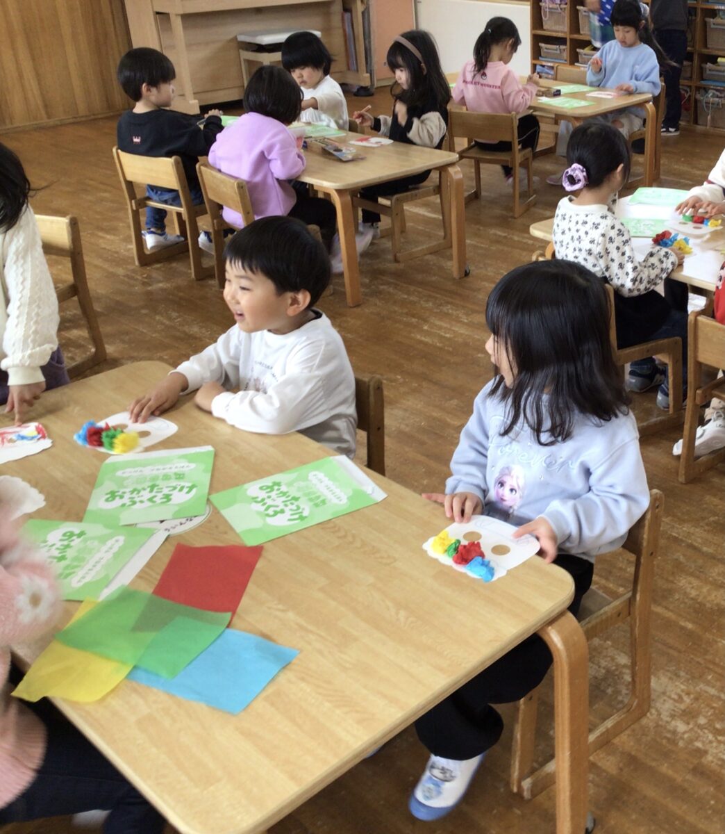 製作をしました。月刊絵本『なんで?』に付録としてついていた”おにのおめん”を作りました!