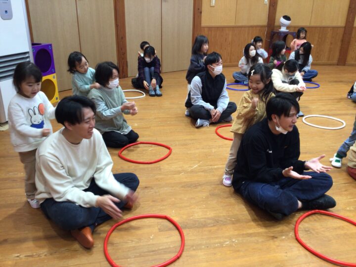 大好きな曲に合わせて手を前に出したり、足を前に出してフリフリ…お友だちやべヴィン先生と一緒に輪になって楽しむ姿がみられました☺