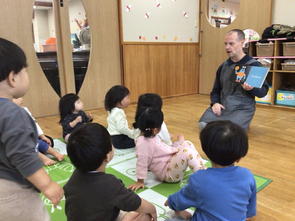 ”くぎずけ”のことり組さんでした。終わり間際、べヴィン先生に「トリックオアトリート!」と皆で声をかけて賑やかに「see 、you! 」をしました。