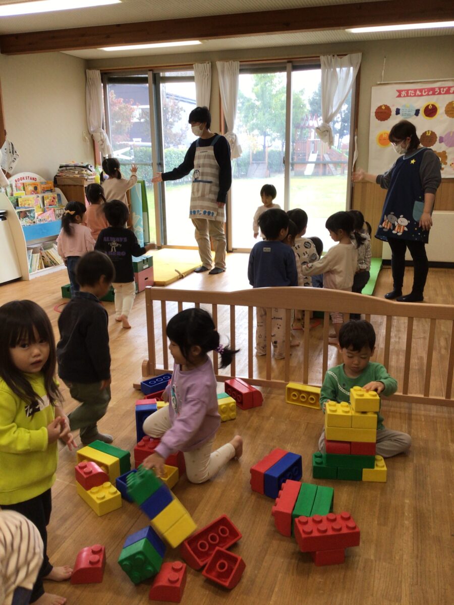 ブロック遊びが大好きなりす組さん。作るのがとても上手で、今日は大きなバイクを作っている子もいました🎵
