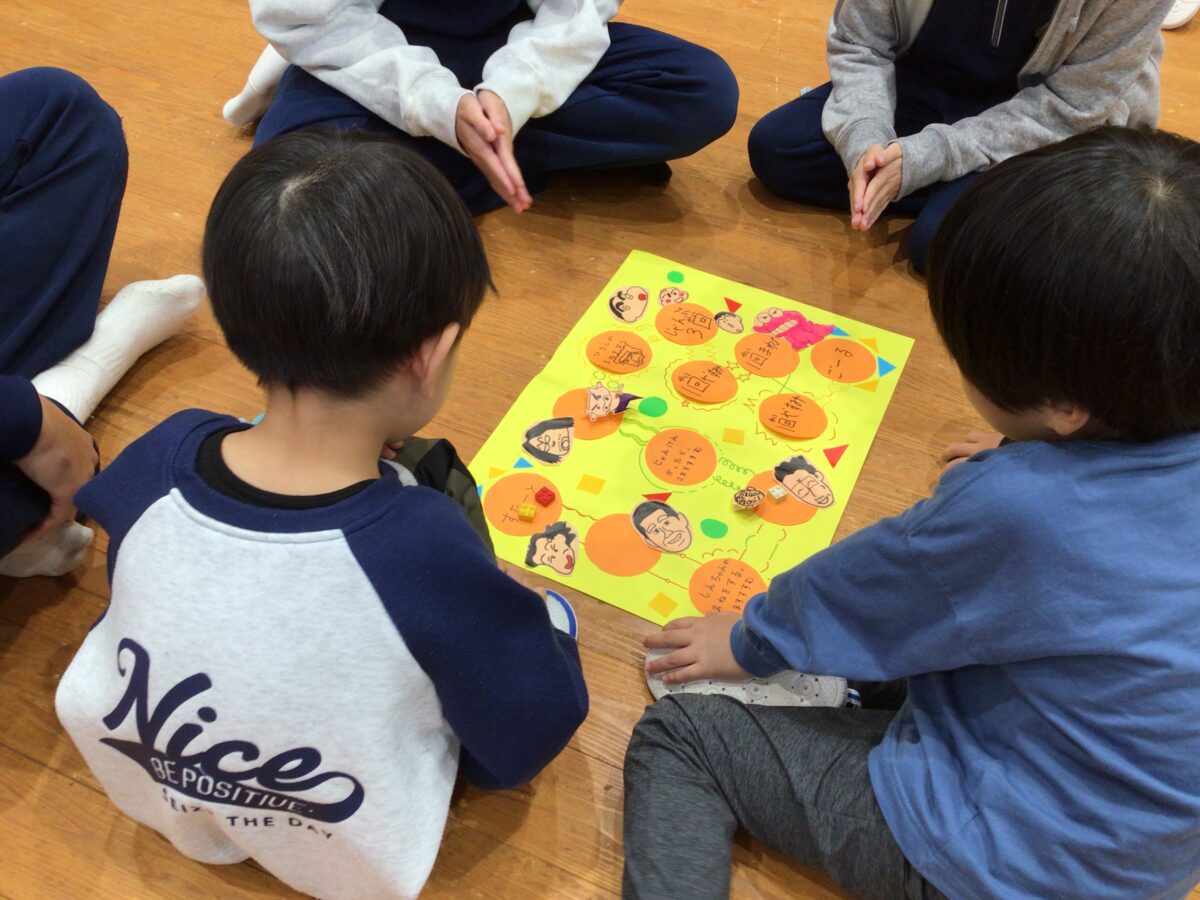 じゃんけん列車で緊張がほぐれた後、すごろくを楽しみました。すごろくでは、ハイタッチをしたり、歌を一緒に歌うマスもあり、笑顔もたくさん見られました😄
