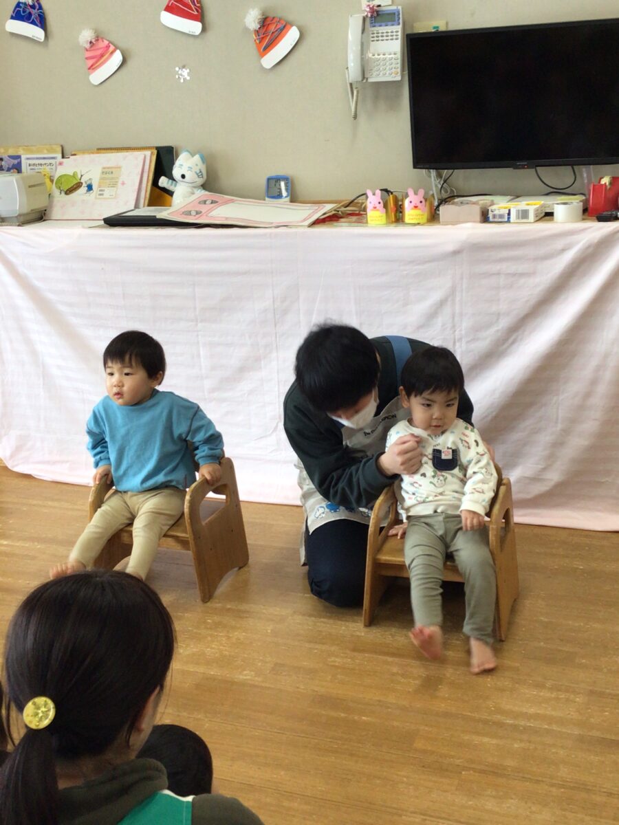 みんなの前に用意してある椅子に座ると、少し緊張した様子の子どもたちでしたが・・・