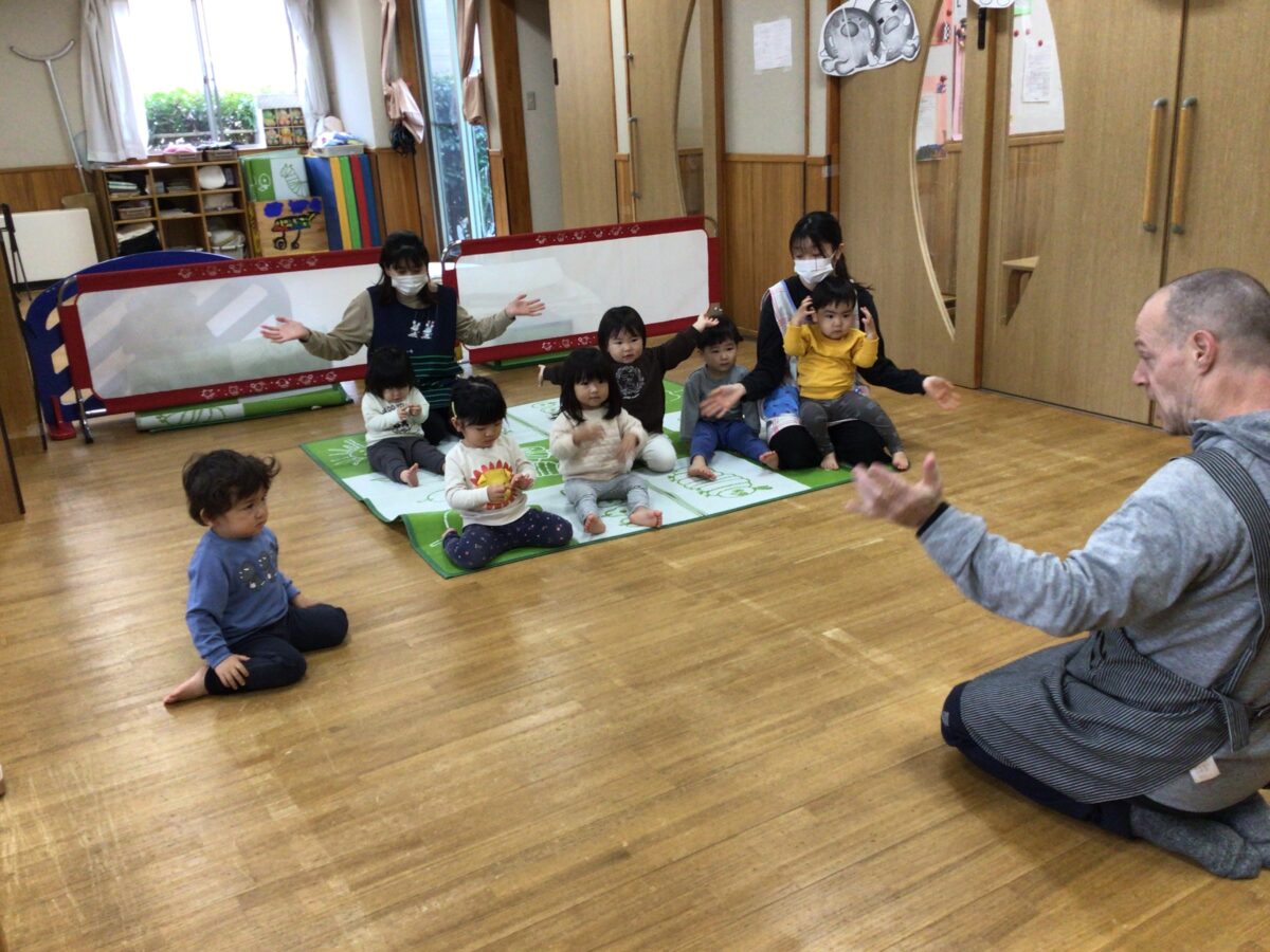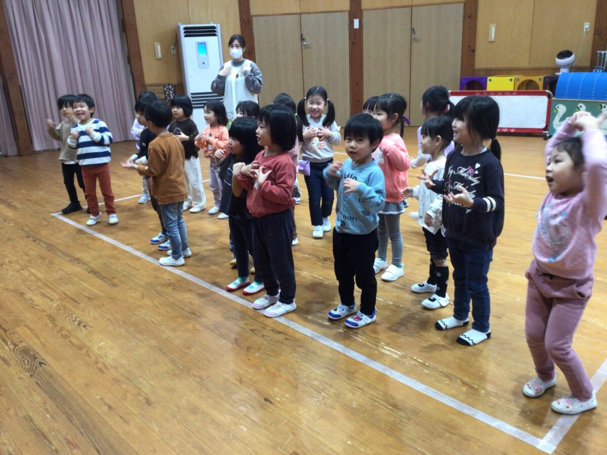 今日はベビン先生の楽しい英語がありました。英語の遊び歌「open shut them」に合わせて手を開いたり閉じたり…動作と言葉を合わせて楽しみながら英語に親しみます。