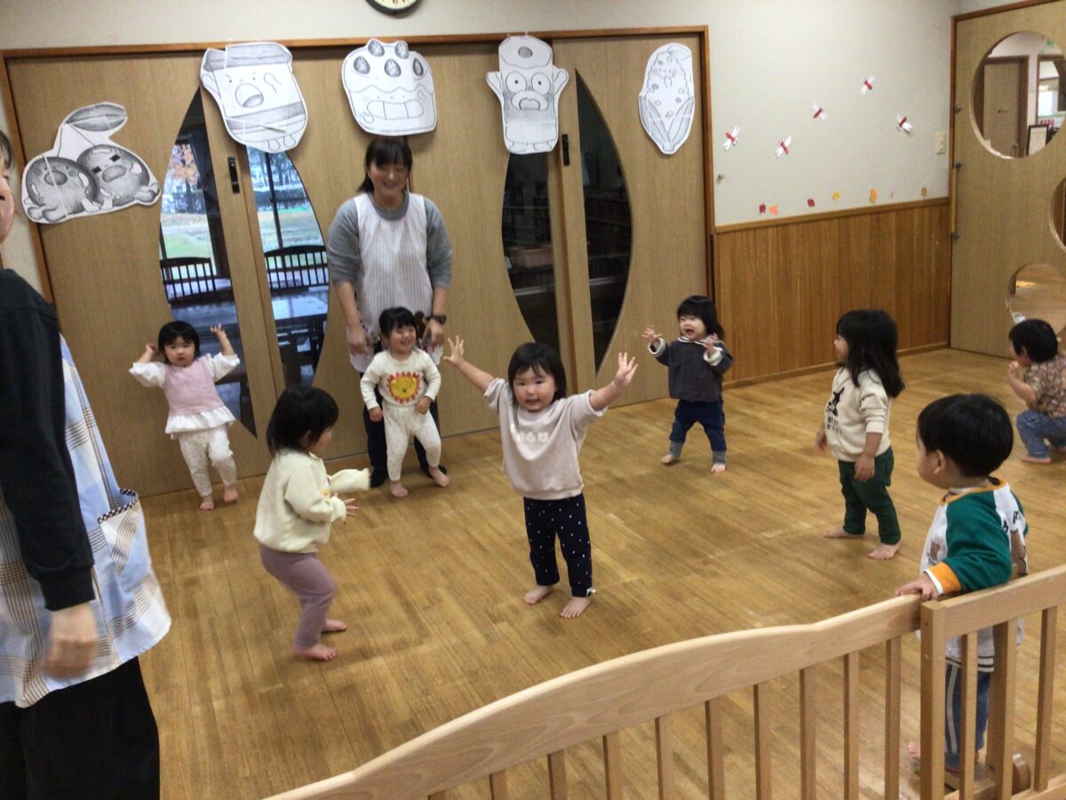 お部屋で元気に「かぼちゃチャチャ」の踊りと