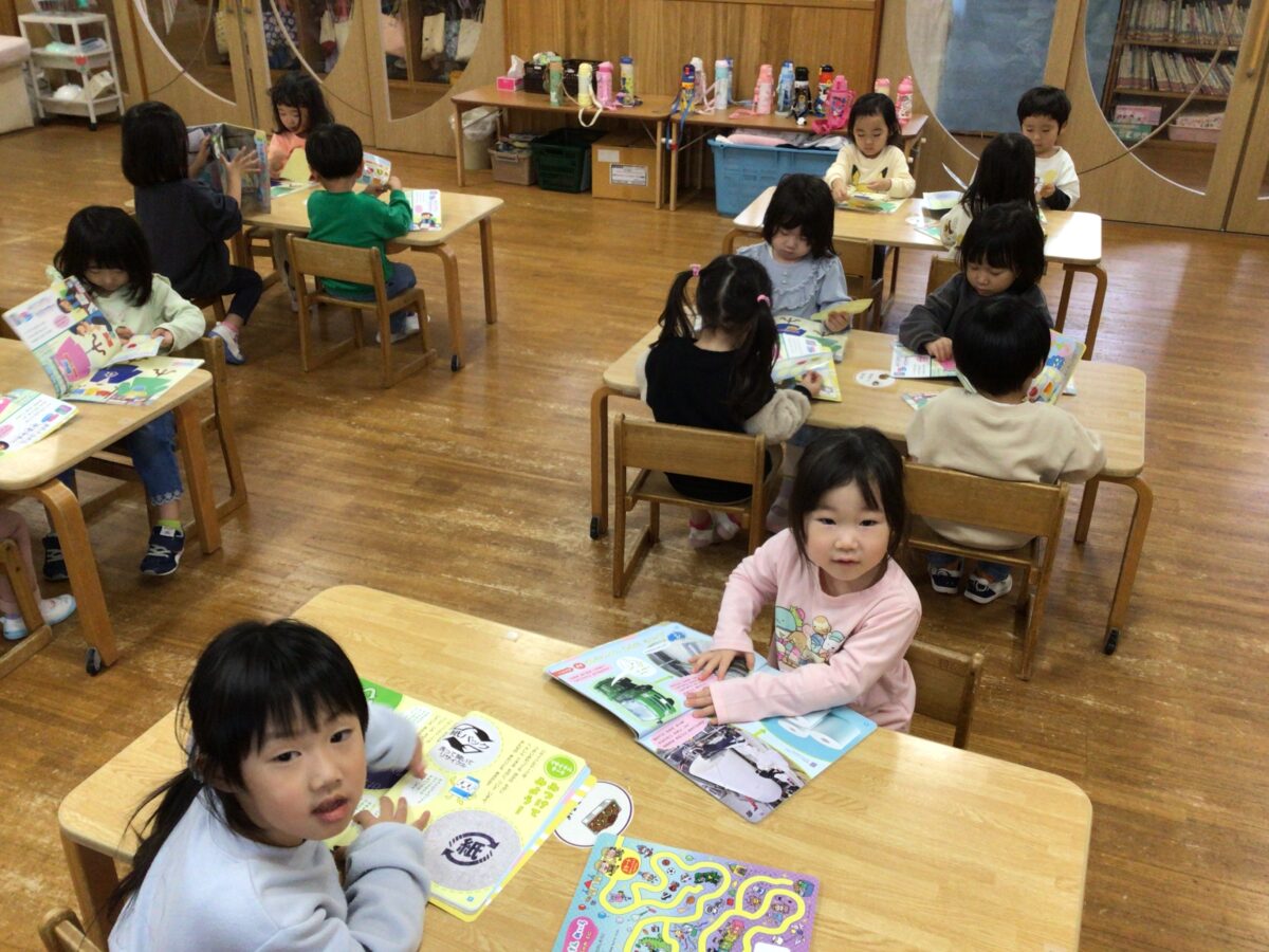 遊戯室で遊ぶ前に、お部屋で月間絵本を見ました📖