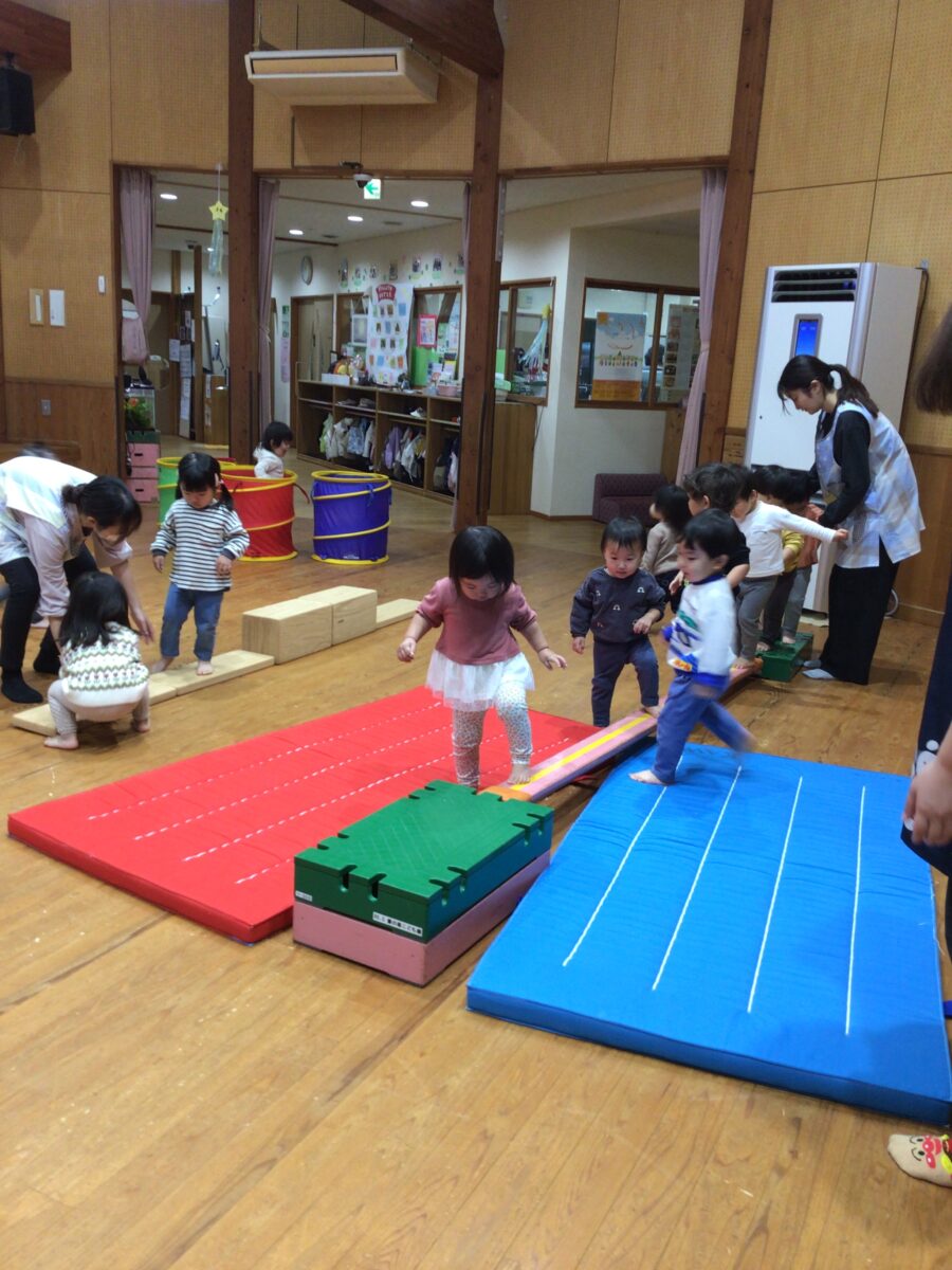他には、平均台やトンネルなど久しぶりのお遊戯室をたっぷりたのしんだ子どもたちでした。