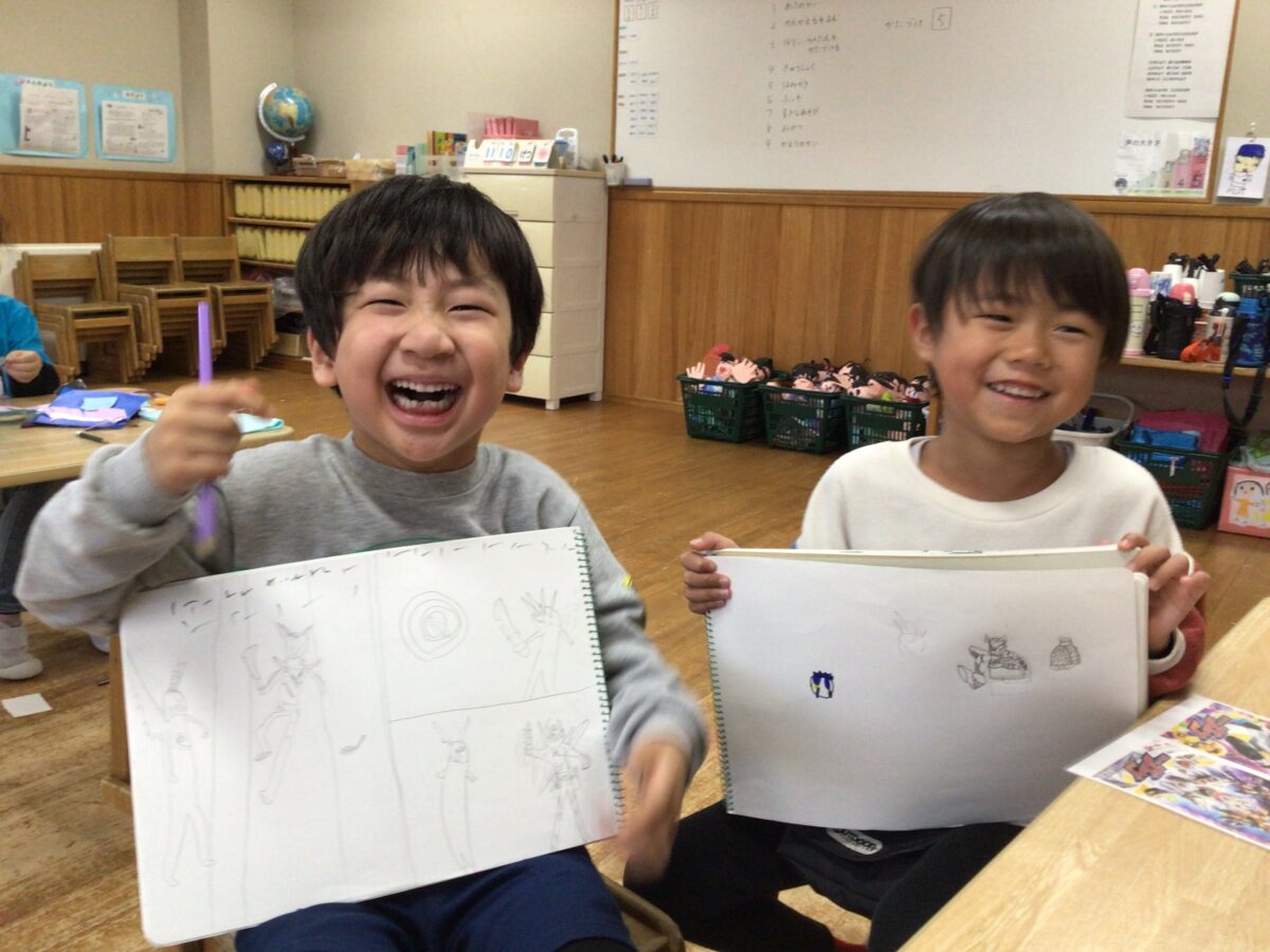 製作をしたり、お友だちとやりとりを楽しみながら絵を描いていました!