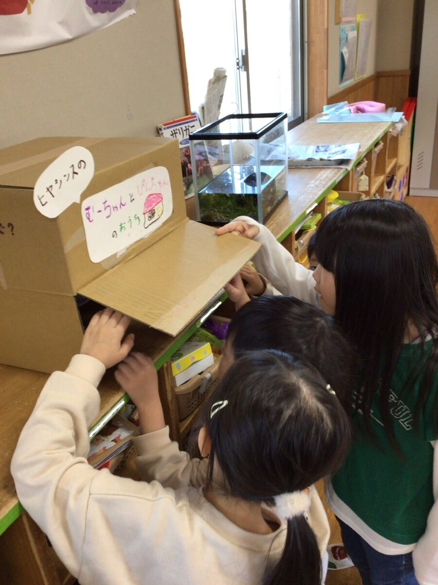 暗くするために箱をかぶせると「おやすみ💕」と声をかけていたしか組さんでした💕