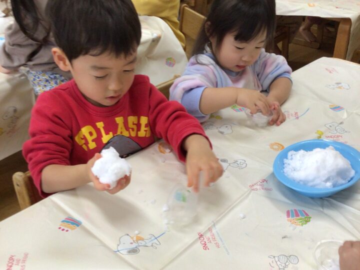「せ~の!」で引っ張り合って「やった!勝った!」「もう一回やろう!!」と話しながら楽しんでいました😊