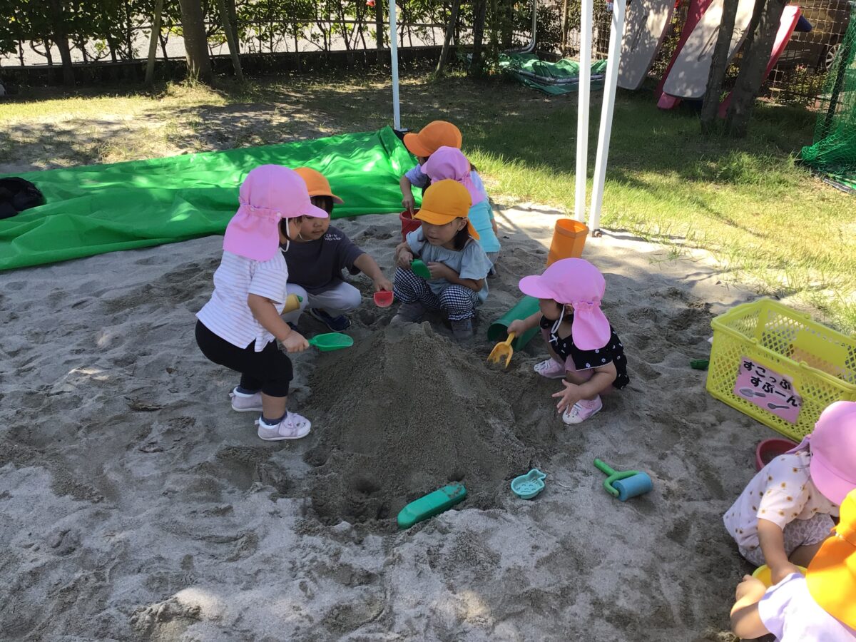 お砂場では、ことり組さんのお友だちと一緒にお山を作っていました🎵