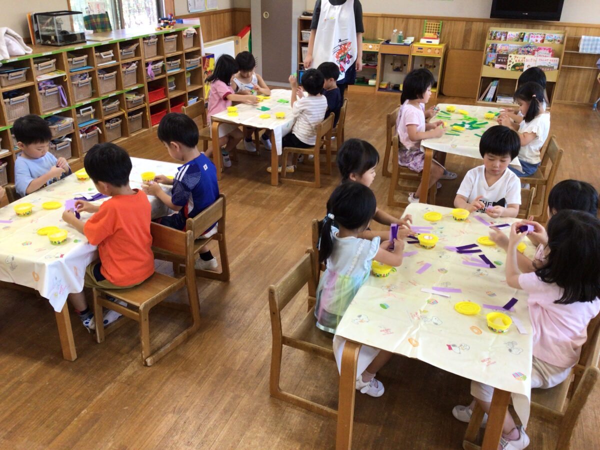 ”輪かざりは〇個繋げて作るよ!!”と保育者が話をすると、