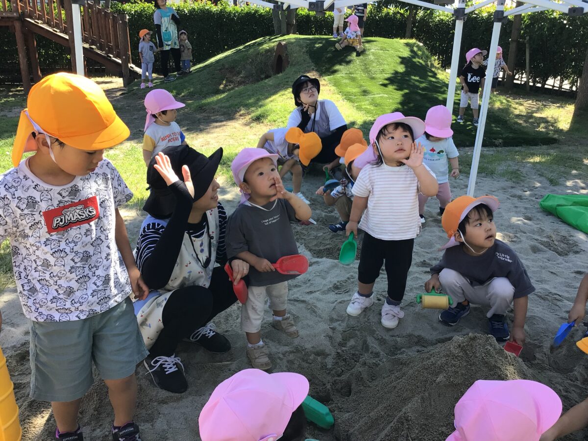 幼児組のお姉さんと一緒に、築山の滑り台をしたりお砂場でご馳走を作ったり…✨