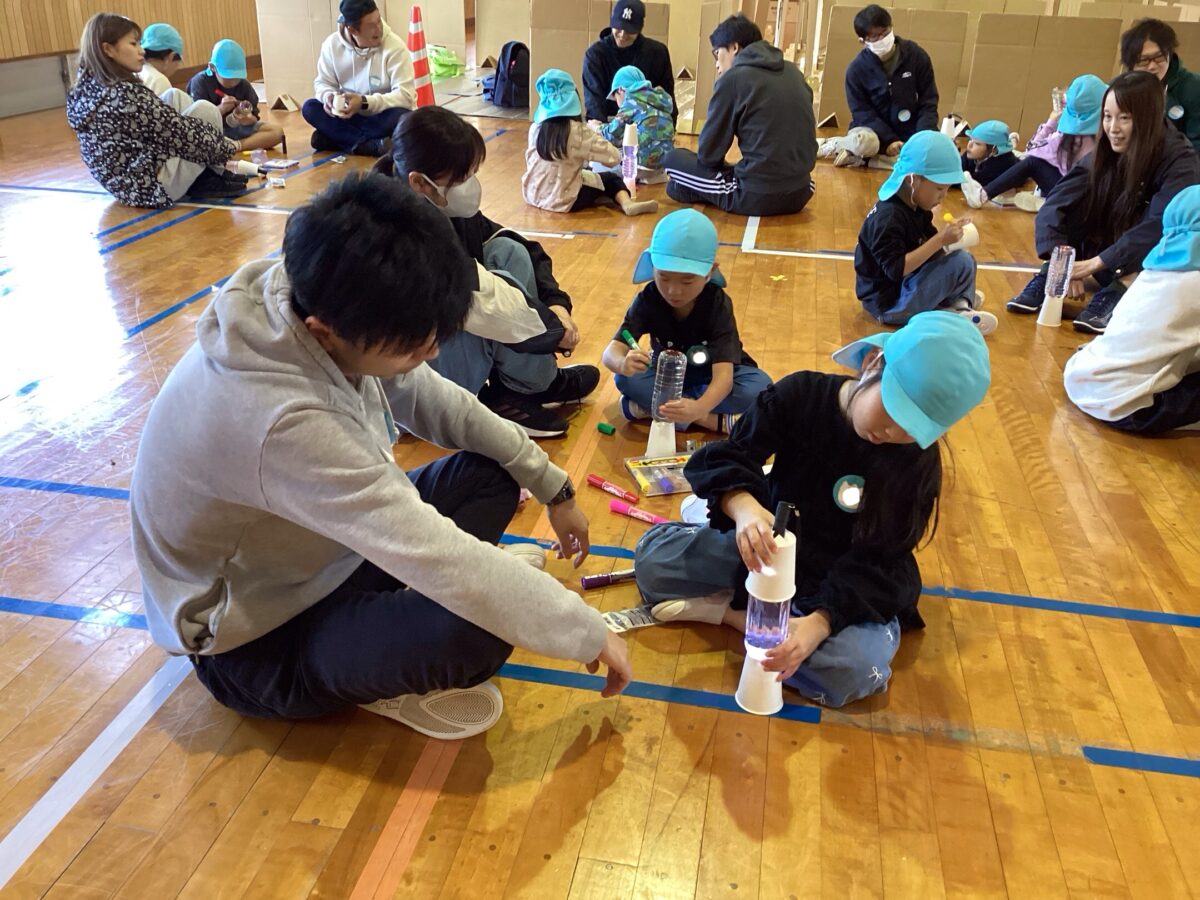 午後からは新聞紙スリッパとペットボトルランタンを作りました。お家にあるものが簡単に防災グッズに変身しました!