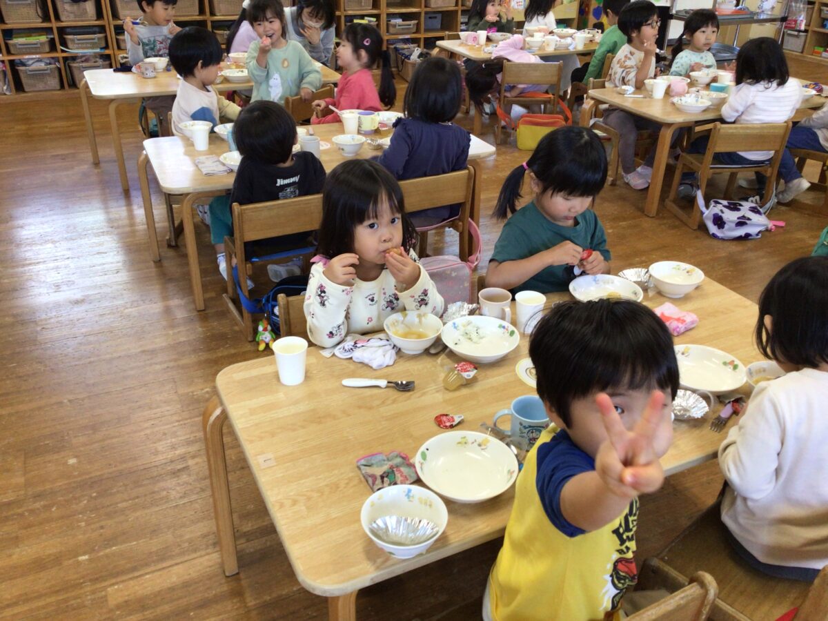 給食の先生がお子様ランチのような盛り付けにして下さり「」お子様ランチみた~い💗」とわくわくしながら美味しく頂いていたうさぎ組さんです!
