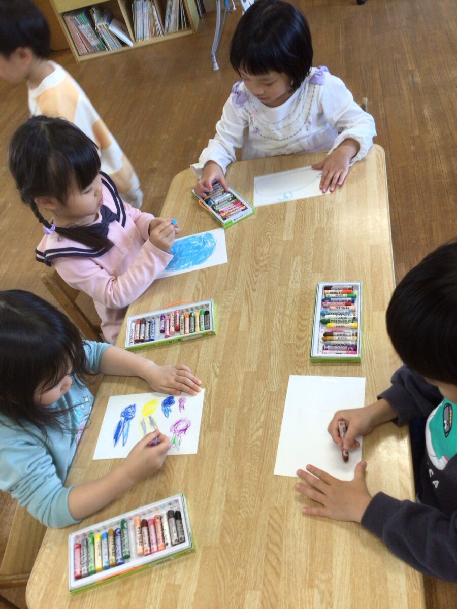 今日は作品展に向けて”ある”絵を描きました。同じ机のお友だちと相談してどんな絵を描くか絵を決めます。「私はこの絵が良いな」「じゃあ、この絵も描いたらいい感じになるんじゃない?」お互いに意見を出し合いながら話していた子どもたちでした😊