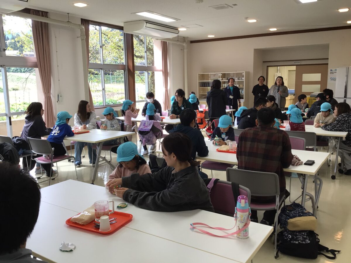 お昼ご飯は救給カレーとじゃがりこサラダでした。じゃがりこを砕いて、お湯を入れるとポテトサラダになる様子に「えぇ~!」と驚いていた子どもたちでした😋