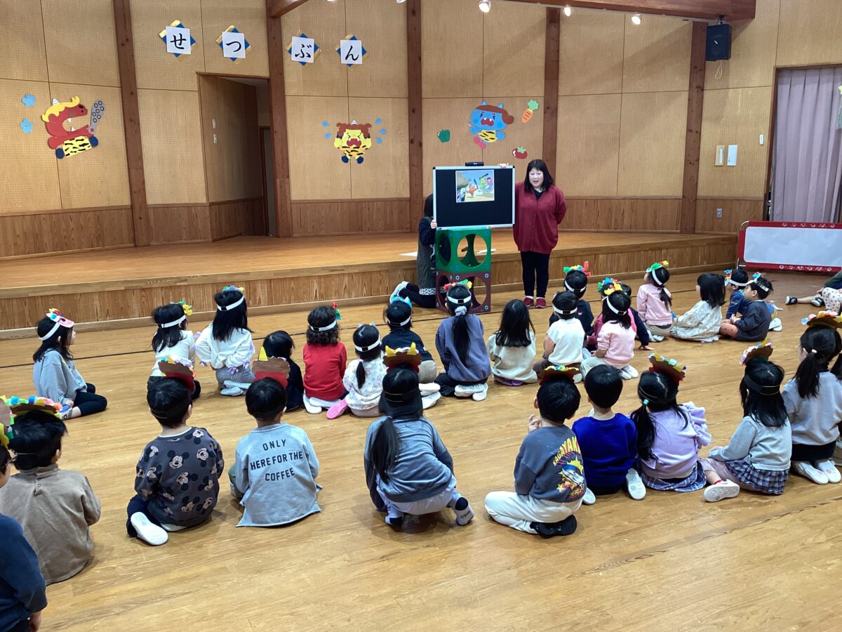 「鬼はいわしのにおいが嫌いなの?」「なんだか不思議だね~」と思い思いの感想を口にしながらも、しっかりとお話を聞いていた子どもたちです。