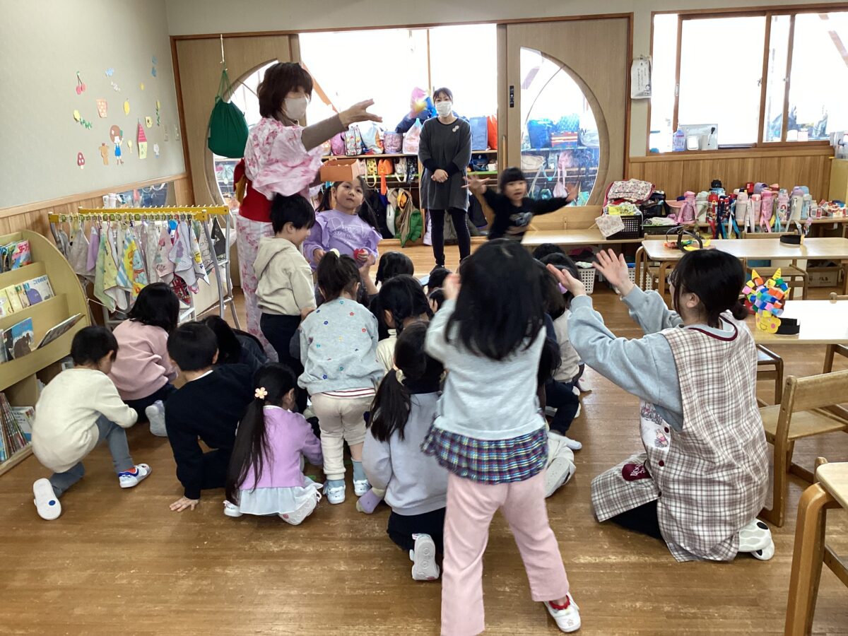 お話を聞いた後は、『まめまき』の歌と『鬼のパンツ』の踊りを元気いっぱい歌って踊りました!
