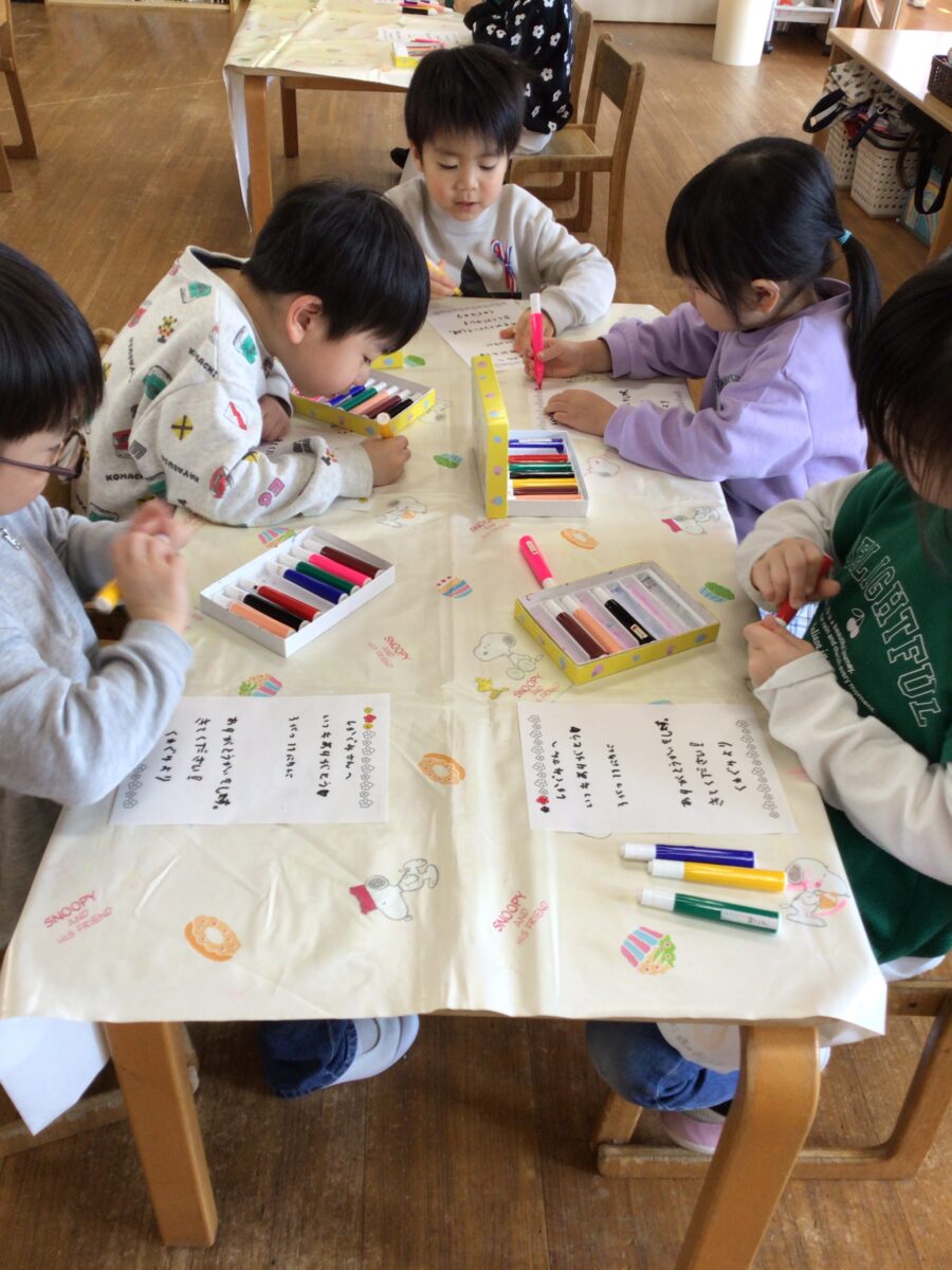 「もうすぐ卒園だね~!」「一年生楽しみ~!」遊びの中でそんな声がたくさん聞こえてくるように