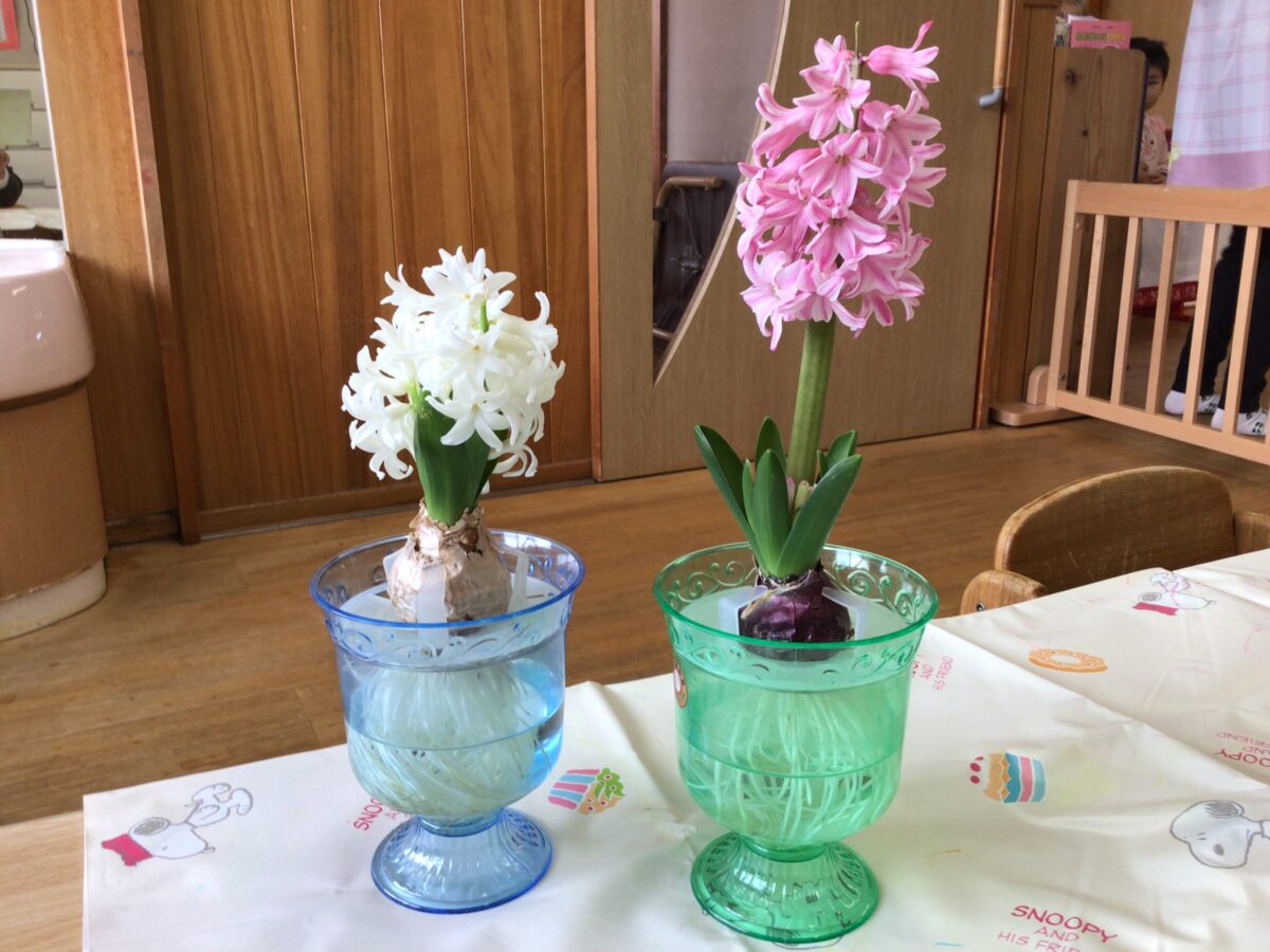 先週、ことり組さんで育ているヒヤシンスの花が咲きました!!
