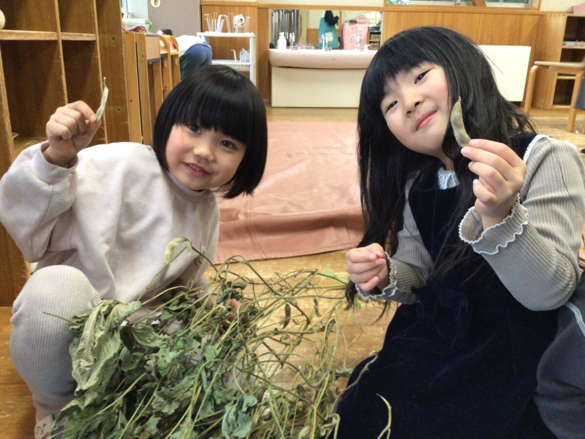 さやから一粒筒取り出した豆たちは、節分の「鬼退治」に使われるそうです。