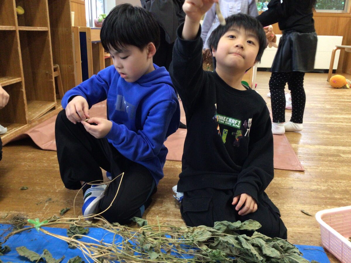 色も茶色く、葉っぱや実の感触もカサカサとしていることに気づいたしか組さん。