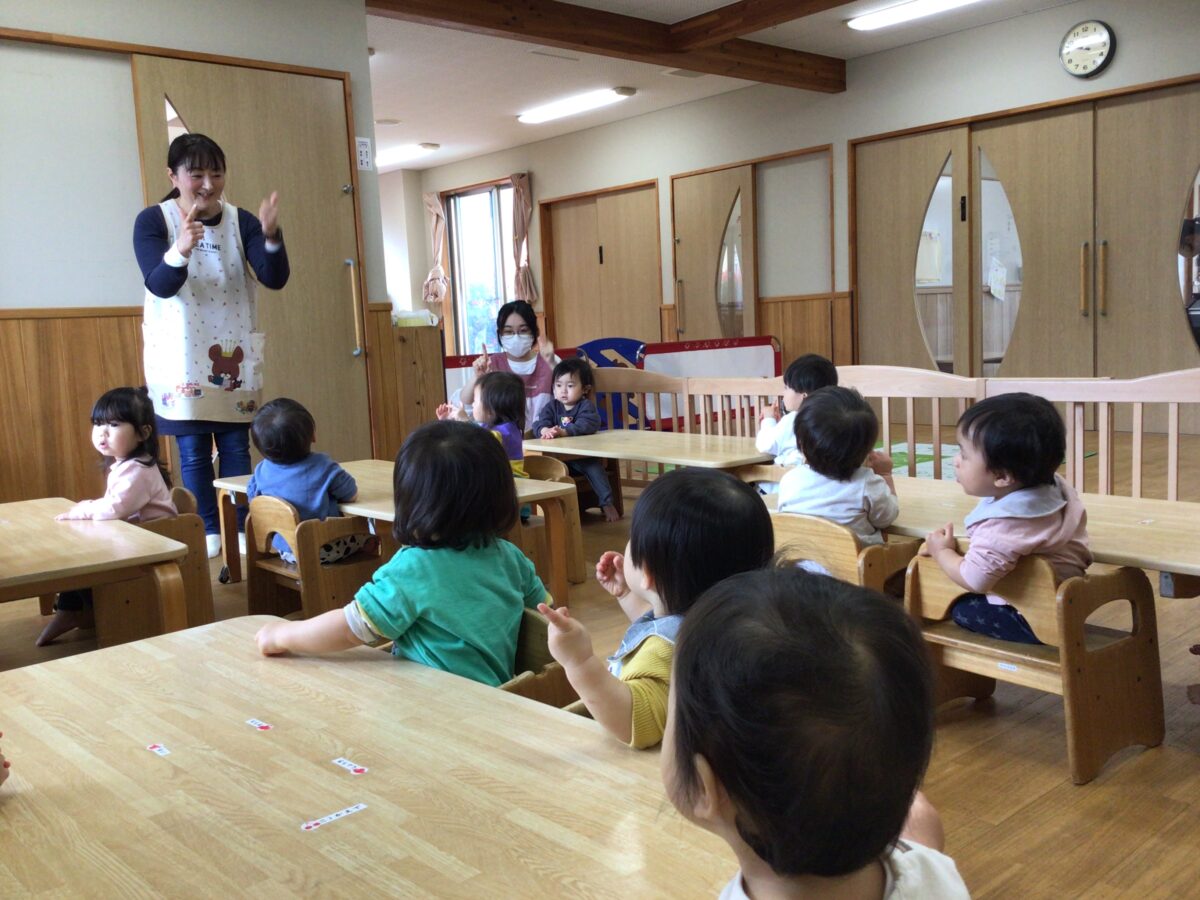 おやつの前には、「キャベツの中から」の手遊びをしました!