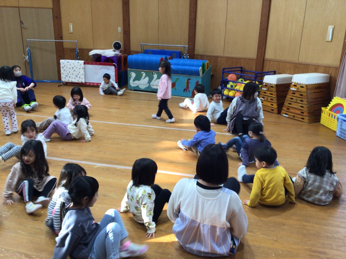 今日のカワイ体育教室では、おしりをつけた鬼ごっこをしました。